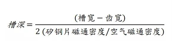 槽開(kāi)口尺寸決定后,槽寬就為已知,再加上齒部寬度尺寸與齒部矽鋼片磁通密度設(shè)計(jì)值,則可計(jì)算槽深尺寸。一般常見(jiàn)之矽鋼片磁通密度設(shè)計(jì)值為1.6T(特斯拉:表示單位面積流經(jīng)的磁力),而空氣的磁通密度為0.6T,其中差了2.67倍;則槽寬減去齒寬后,再除上2,以獲得單側(cè)尺寸,后面再除上空氣與矽鋼片的磁通密度比例差2.67,即可得到蕞小槽深尺寸,若于靴部與齒部銜接處,加入導(dǎo)角或斜角設(shè)計(jì),小槽深尺寸可以進(jìn)一步縮短空間。